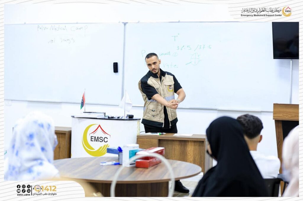 في أجواء تدريبية تفاعلية، انطلق يوم الأمس الأحد في قاعة تدريب مركز طب الطوارئ والدعم – مصراتة، مخيم Pulse Medical Camp، حيث ركز التدريب في اليوم الأول على مهارات تقييم العلامات الحيوية (Vital Signs Assessment).