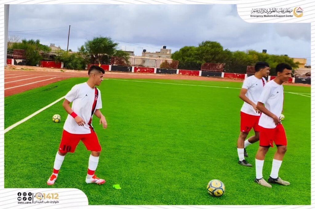 في إطار دعم الأنشطة الرياضية وتأمين سلامة اللاعبين، تولّى مركز طب الطوارئ والدعم – مكتب المرج يوم الإثنين 17 نوفمبر مهمة التغطية الطبية للمباراة التي جمعت فريق أواسط المروج بنظرائهم أواسط الأهلي بنغازي، ضمن منافسات الدوري الليبي الممتاز للأواسط، والتي احتضنها ملعب المرحوم بشير جودة بمدينة المرج.