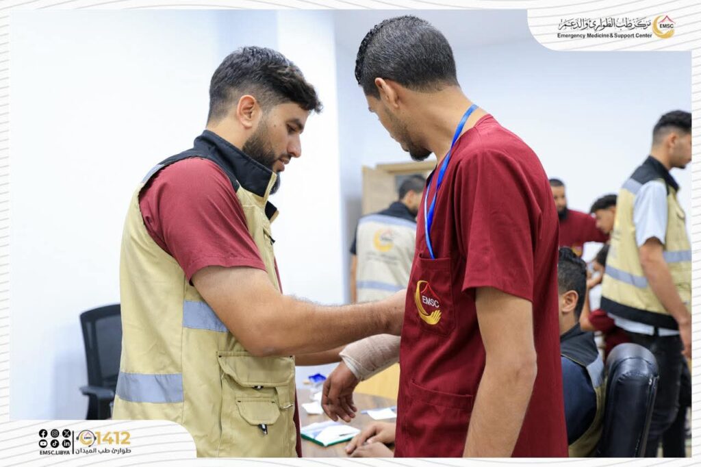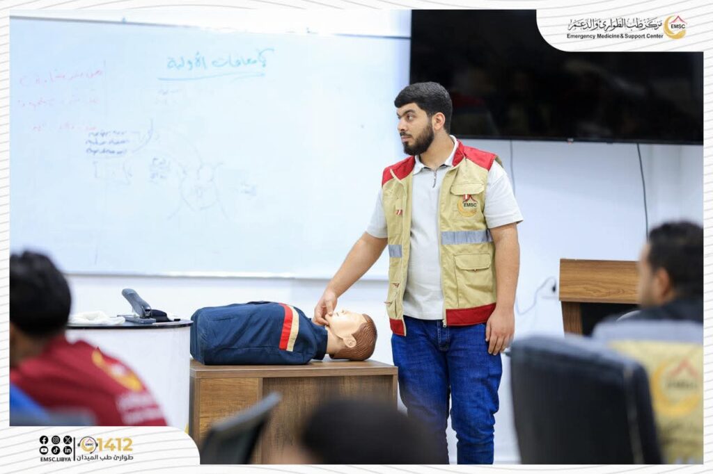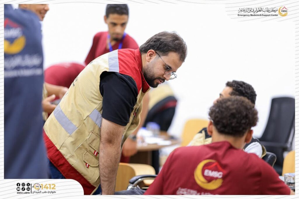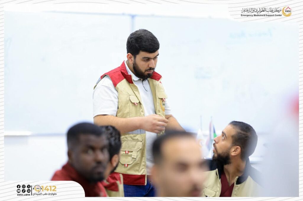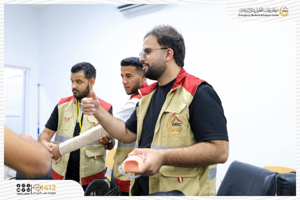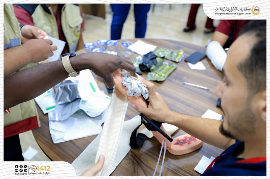 تتواصل في مركز طب الطوارئ والدعم – مصراتة فعاليات اليوم الثاني من المخيم التدريبي لتأهيل فرق الطوارئ الطبية (EMT-1).