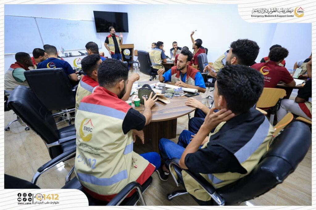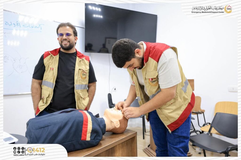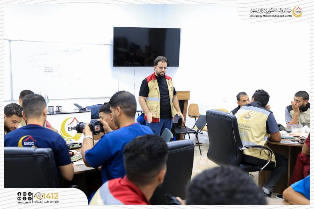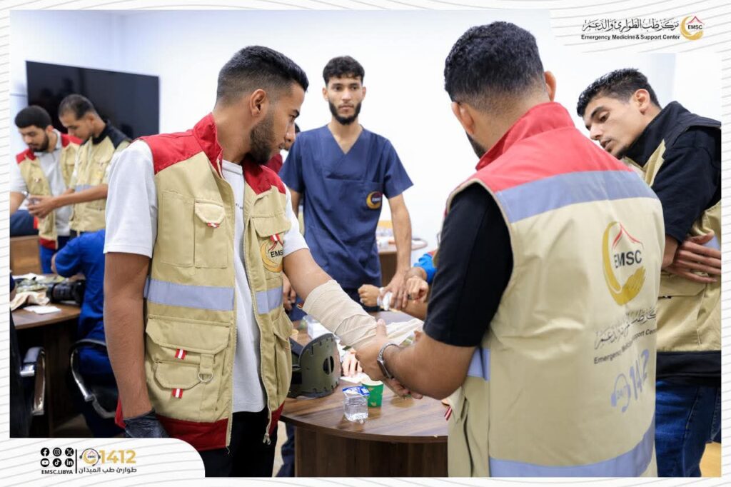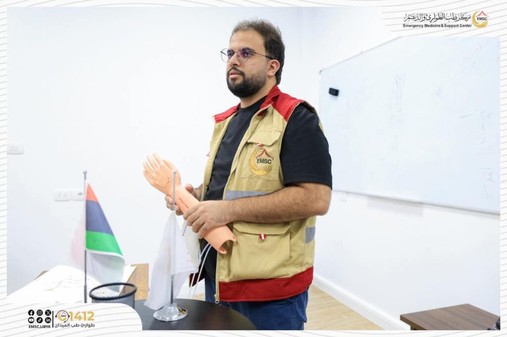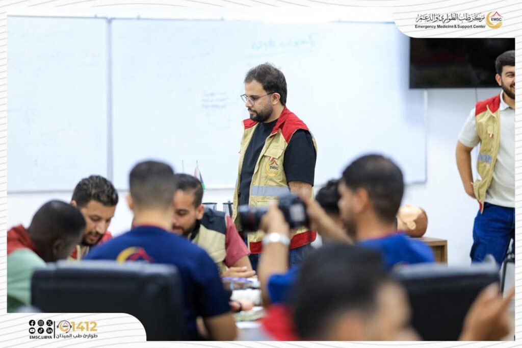 تتواصل في مركز طب الطوارئ والدعم – مصراتة فعاليات اليوم الثاني من المخيم التدريبي لتأهيل فرق الطوارئ الطبية (EMT-1).