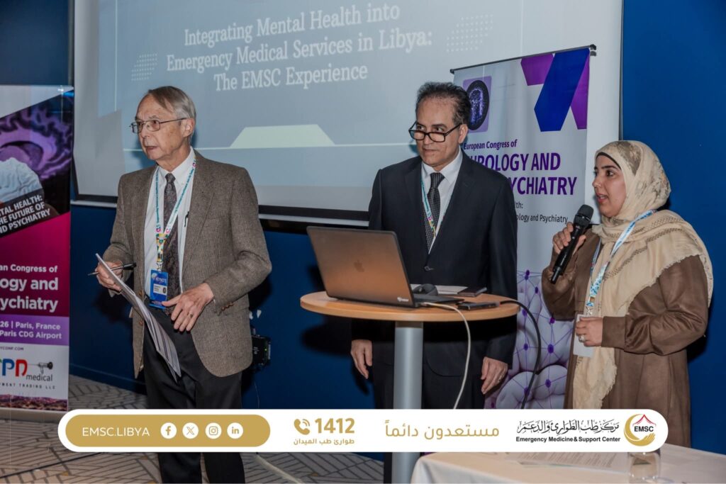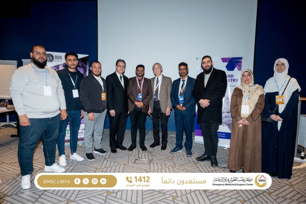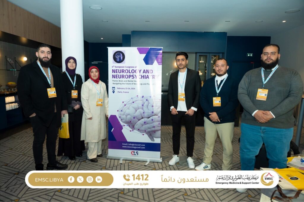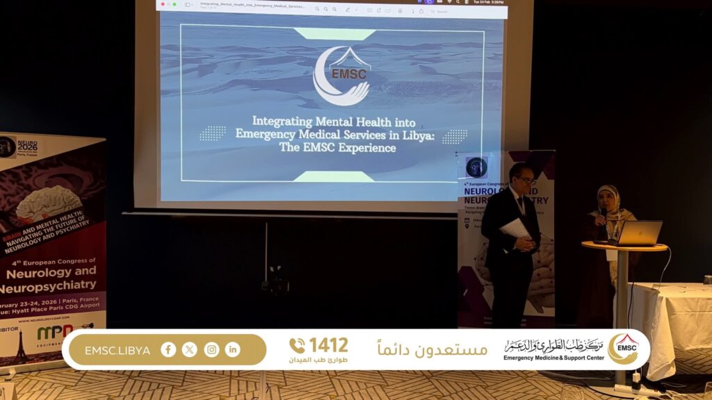 شارك مركز طب الطوارئ والدعم في المؤتمر الأوروبي الرابع لطب الأعصاب والطب النفسي العصبي الذي أُقيم في فرنسا يومي 23–24 فبراير 2026، حيث قدّم وفد المركز عرضًا علميًا بعنوان Integrating Mental Health into Emergency Medical Services in Libya – EMSC Experience.