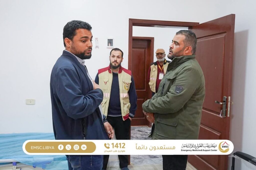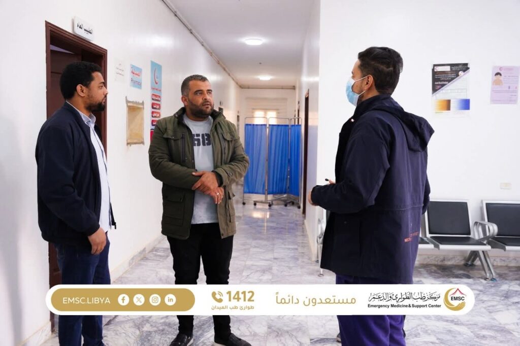 ضمن جهود مركز طب الطوارئ والدعم لتعزيز مستوى الخدمات الصحية في مختلف المناطق، أجرى فريق مختص من مركز طب الطوارئ والدعم زيارة ميدانية إلى مستشفى الشويرف، الواقعة على بعد نحو 417 كيلومتر عن العاصمة طرابلس، وذلك في إطار متابعة أوضاع المرافق الصحية والوقوف على مدى جاهزيتها لتقديم الخدمات الطبية.