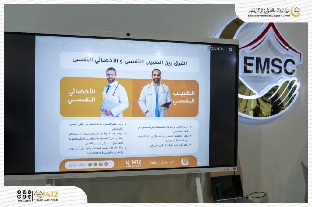 يتواصل حضور مركز طب الطوارئ والدعم في اليوم الثاني من ملتقى ومعرض ليبيا للرعاية الصحية، عبر جناحه المخصص للعيادة النفسية، حيث شهد إقبالًا متزايدًا من الزوار من مختلف التخصصات الطبية والتمريضية، إضافة إلى عدد من الطلبة والمهتمين بمجال الصحة النفسية.