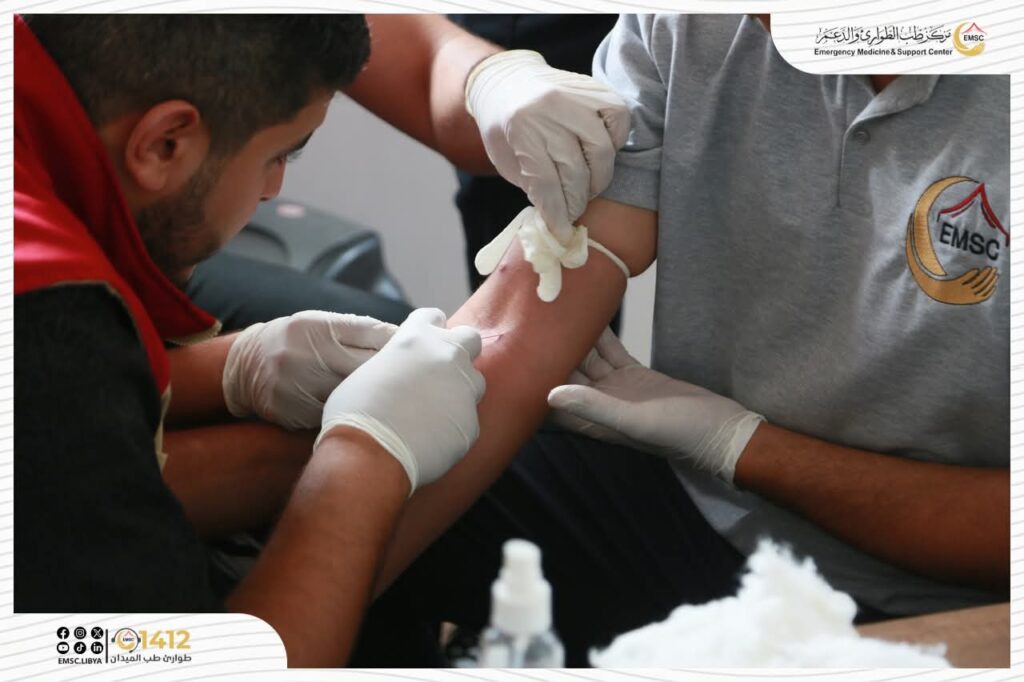 يواصِل مركز طبّ الطوارئ والدعم – مكتب الزاوية فعاليات الدّورة التدريبية المُتخصّصة في الإسعافات الأولية والتعامل مع الطوارئ، ضمن مسارٍ تطويري متكامل يرسّخ ثقافة التدريب المستمر ويرفع جاهزية فرقنا الميدانية.