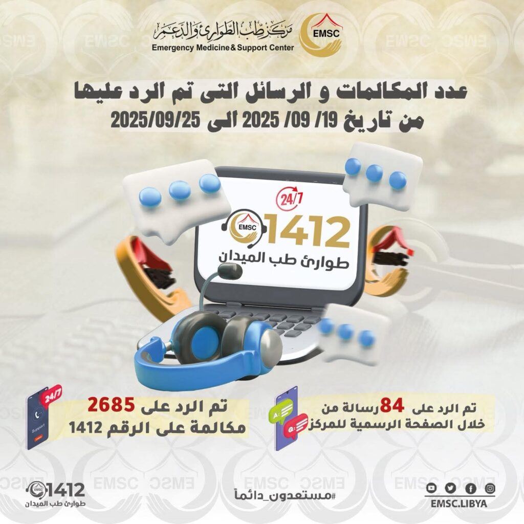 As part of its continuous commitment to serving citizens and providing emergency medical support across Libya, the Emergency Medicine & Support Center continued its 24/7 operations through the toll-free number 1412 and its digital services. We remain dedicated to serving you 24 hours a day, 7 days a week, always ready to respond promptly and […]