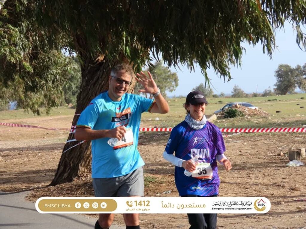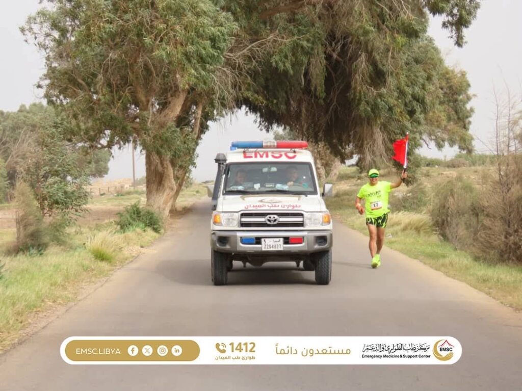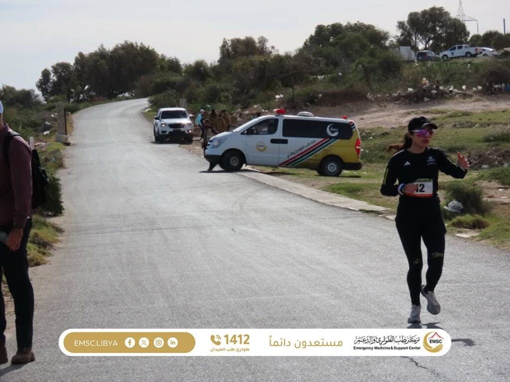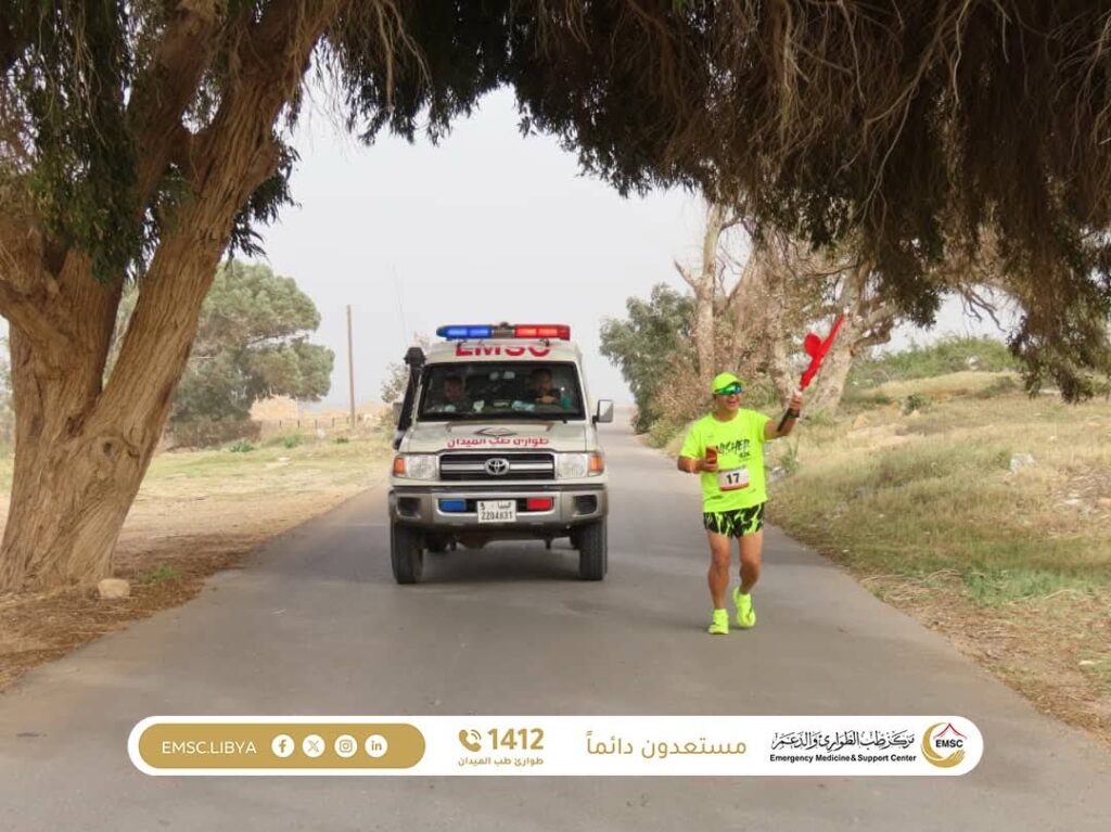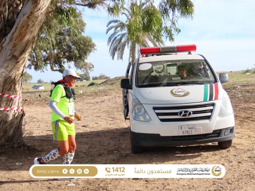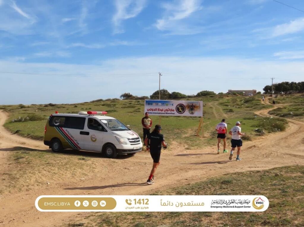 The Emergency Medicine and Support Center – Al-Khums Office is providing essential medical care to participants and international tourists taking part in the Leptis Sports Marathon, held in the city of Al-Khums near the historic landmark of Leptis Magna.