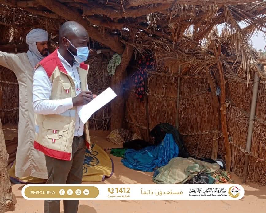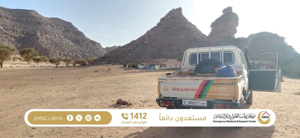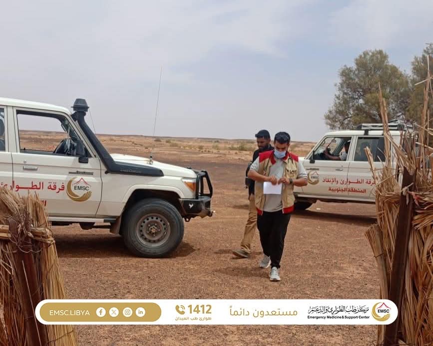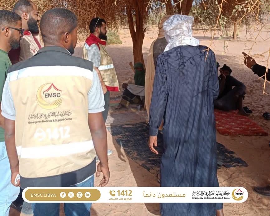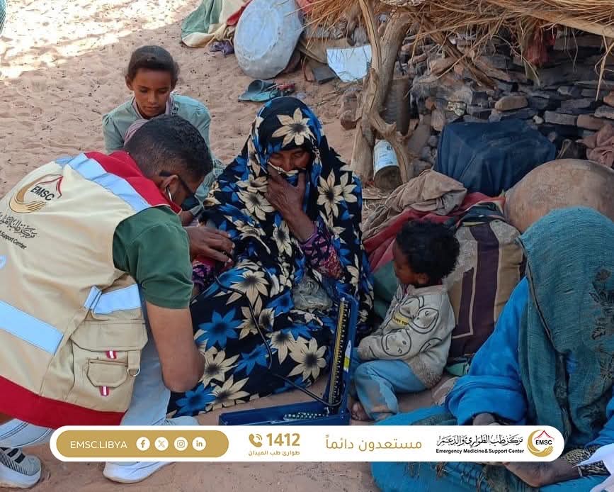 In a scene that reflects the true meaning of reaching those most in need of care, the Emergency Medicine and Support Center carried out a medical convoy to the Tadrart region one of the isolated areas deep in the desert, located more than 100 kilometers from the nearest city, Al-Awainat.