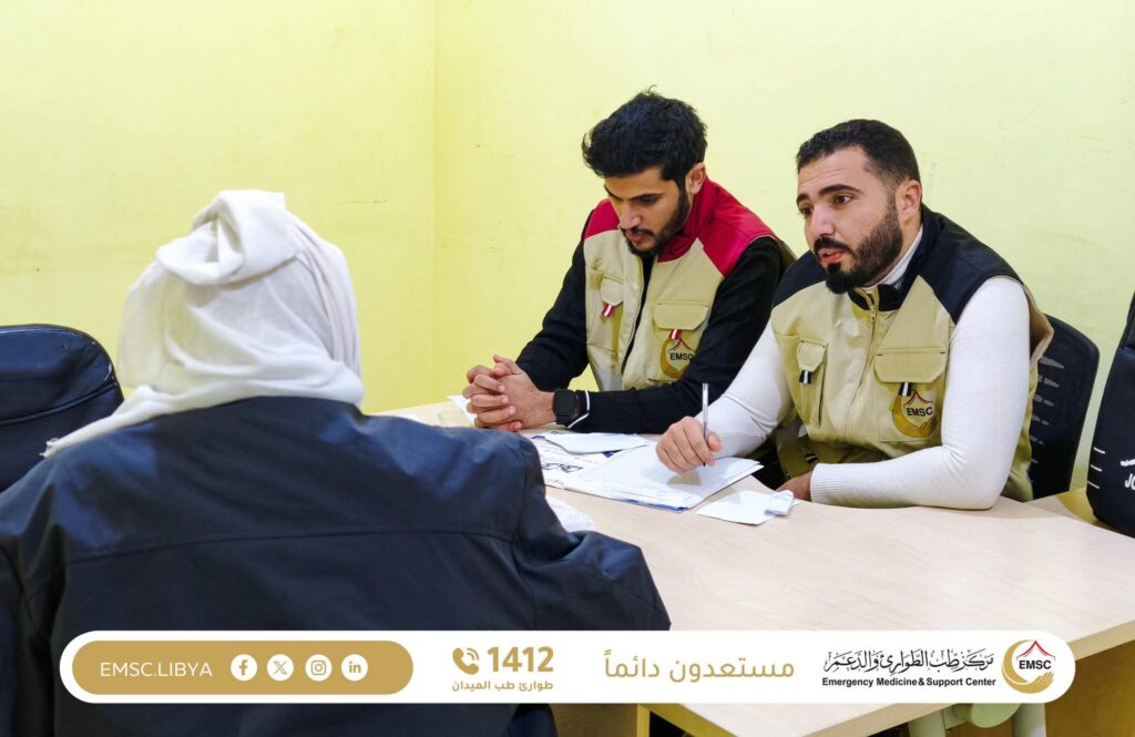 The Emergency Medicine and Support Center – Al Marj Office deployed an integrated medical convoy to Jardas Al-Abid Municipality, specifically to the Salaiya Health Center, comprising physicians specialized in Internal Medicine and Orthopedic Surgery, along with nursing staff, as part of its ongoing efforts to deliver healthcare services to various regions.