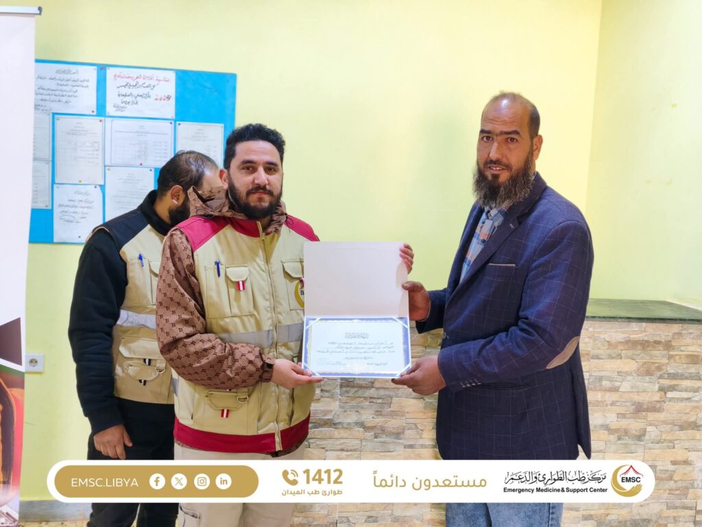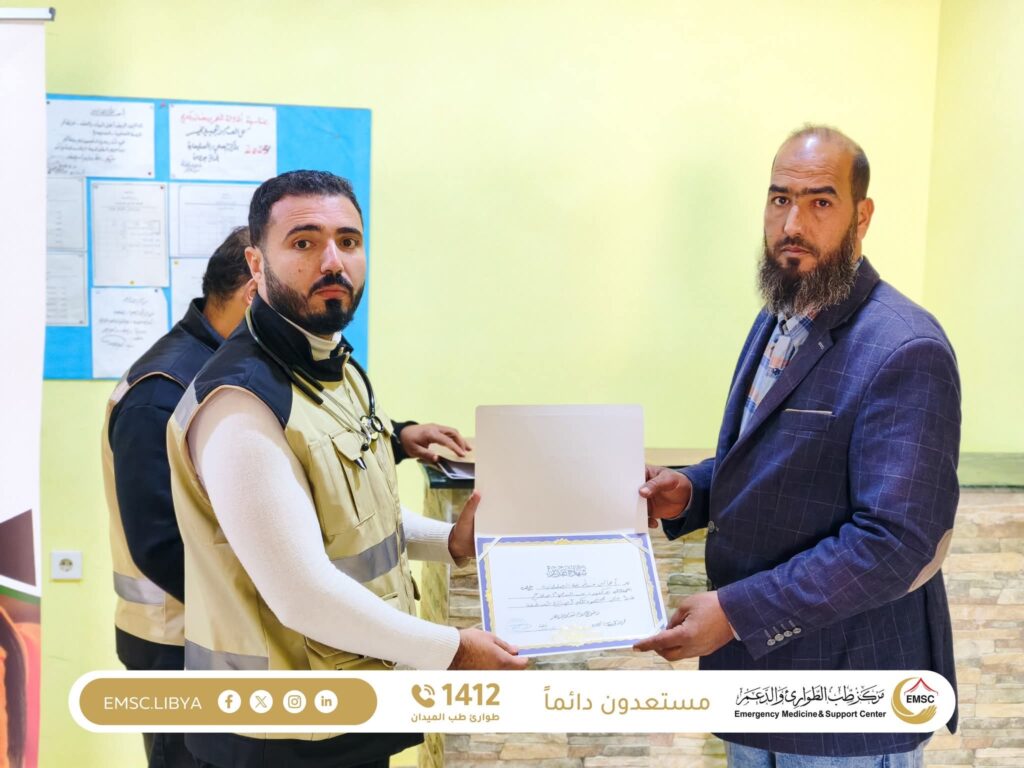 At the conclusion of the day’s activities, the Emergency Medicine and Support Center – Al Marj Office was honored in recognition of its active role and dedicated efforts in serving citizens and alleviating their health-related suffering, reflecting its humanitarian and national commitment.