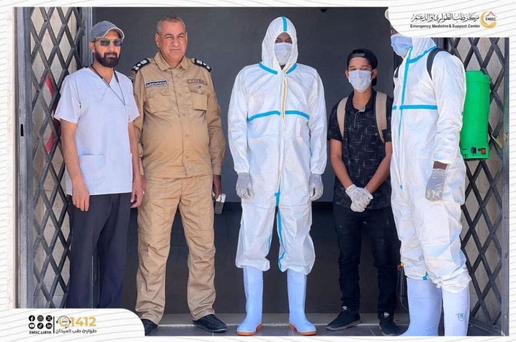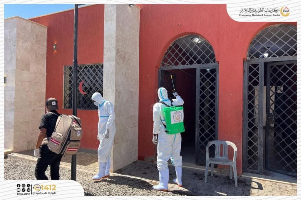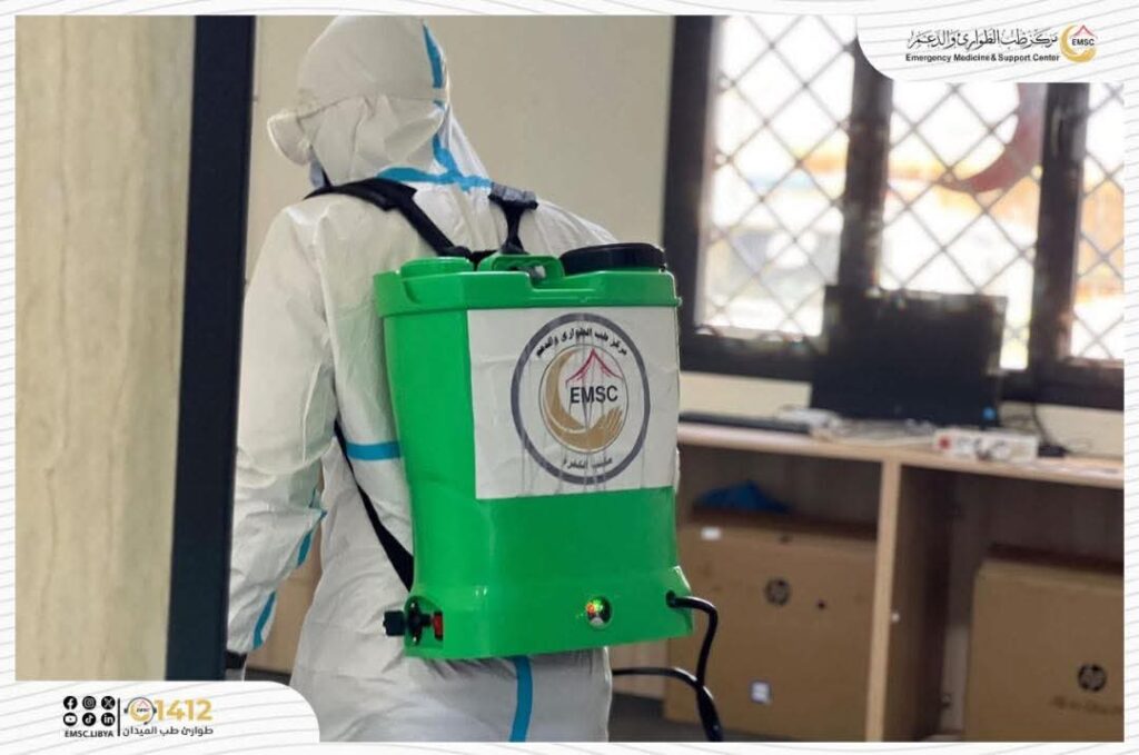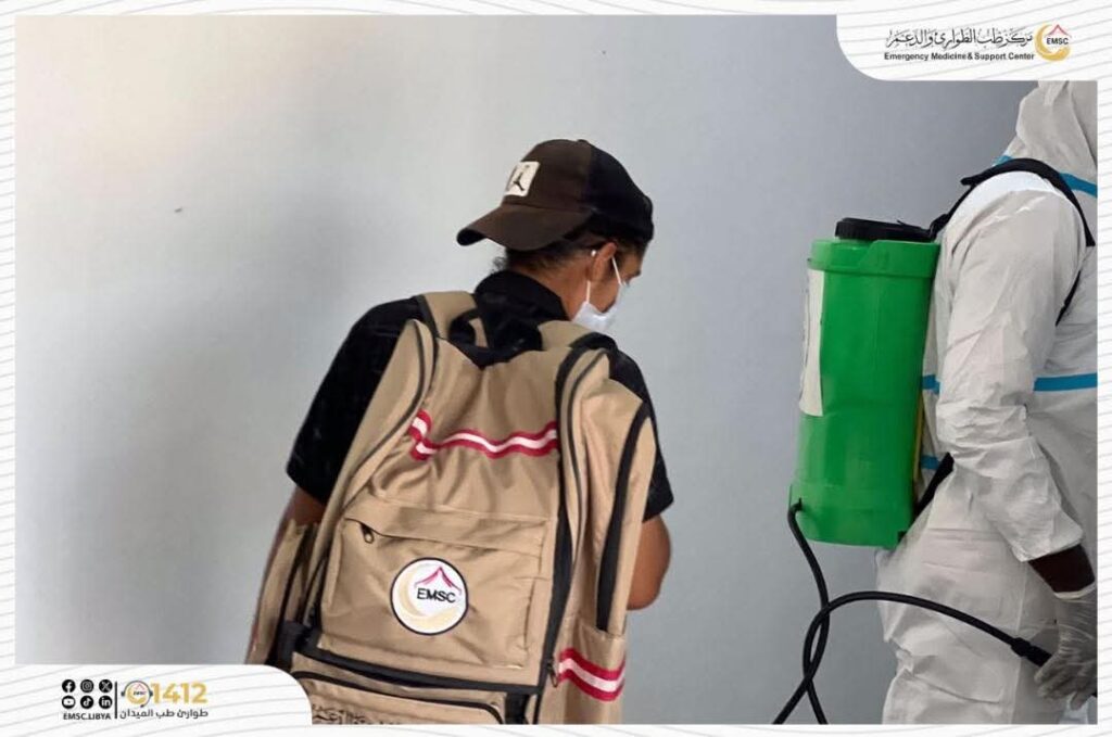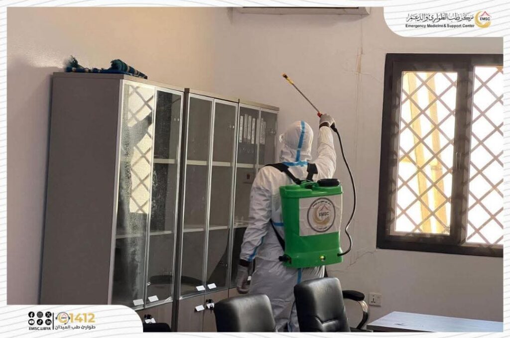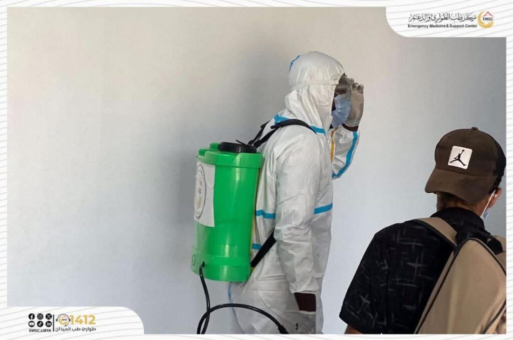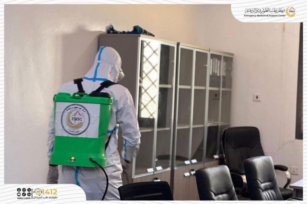In cooperation with the Department for Combating Illegal Migration, the Kufra Office of the Emergency Medicine and Support Center carried out a disinfection campaign covering the department’s branches in the region and migrant shelters.