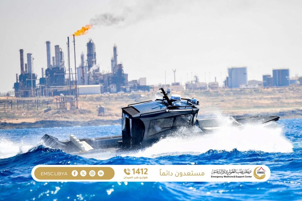 As part of its national and humanitarian mission, the Emergency Medicine and Support Center – Zawiya Office took part in providing medical coverage for a naval military exercise carried out by the Zawiya Refinery unit.