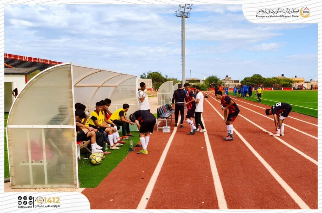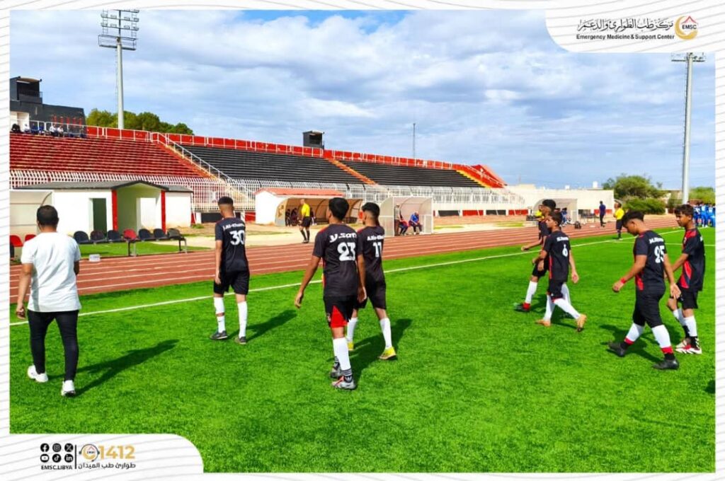 As part of its humanitarian mission to provide medical care to all those in need, and in line with its commitment to enhancing the quality of health services across various events, the Emergency Medicine and Support Center – Al-Marj Office has commenced its duties in providing medical coverage for the Libyan Youth League matches, following the official handover of responsibilities for medical coverage inside the city’s stadiums.