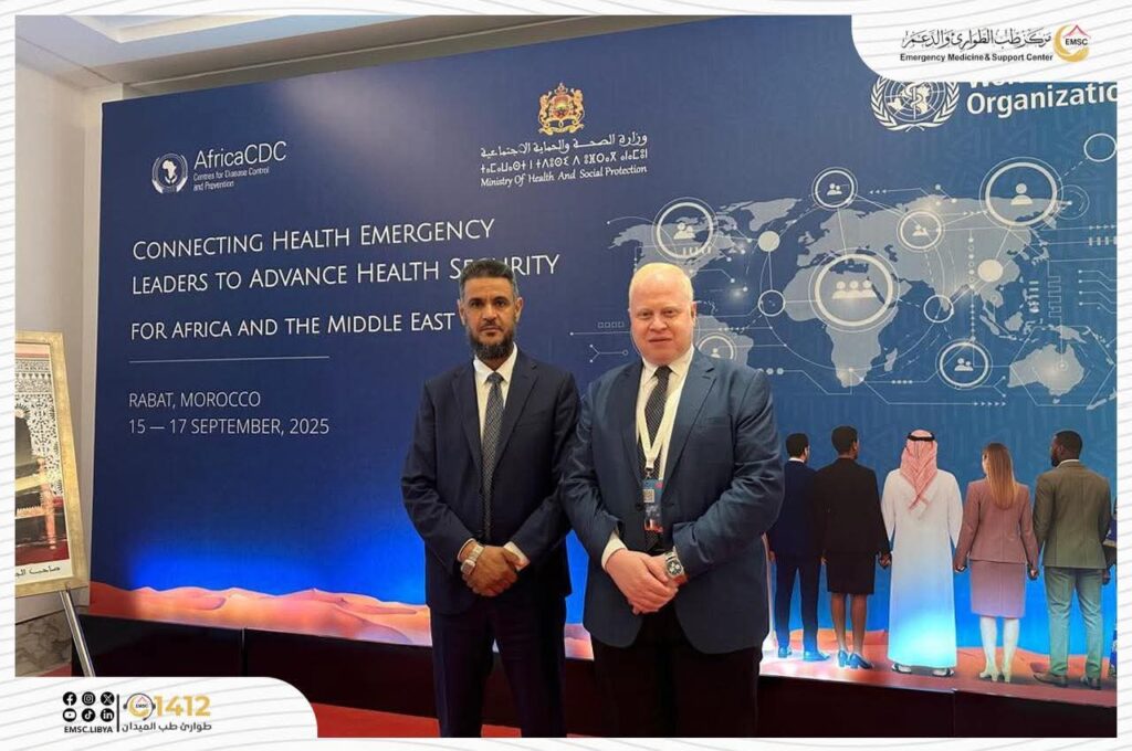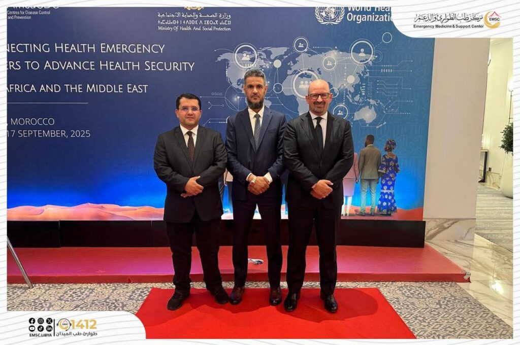As part of its continuous efforts to enhance emergency healthcare services in Libya and expand cooperation with regional and international centers, the Emergency Medicine and Support Center, represented by its General Manager and Advisor, participated in the regional meeting hosted by the Kingdom of Morocco. The event was organized by the World Health Organization (WHO/EMRO) and the Africa CDC, with the participation of more than fifty countries from Africa, the Middle East, and the Gulf region.