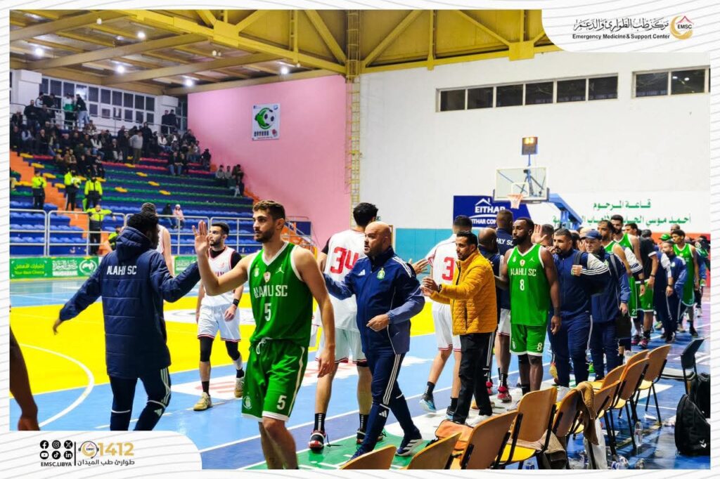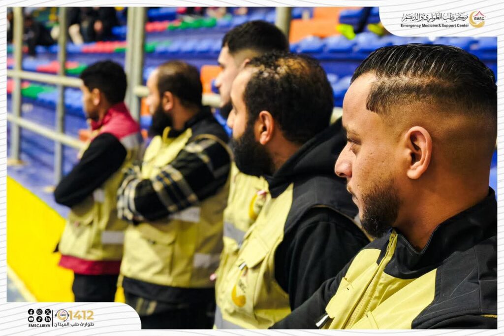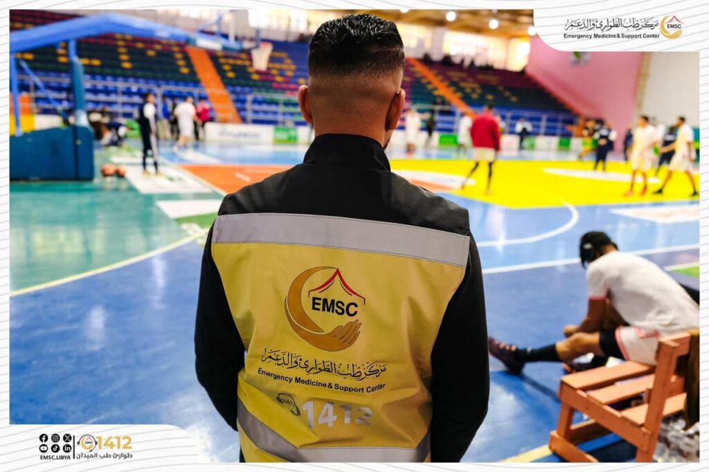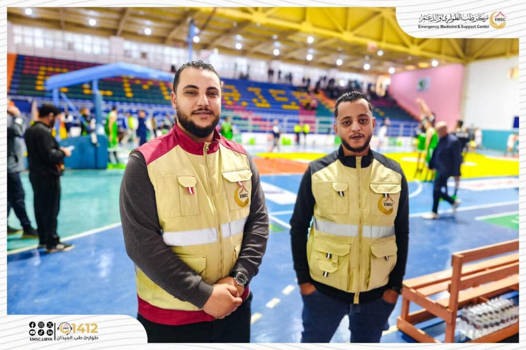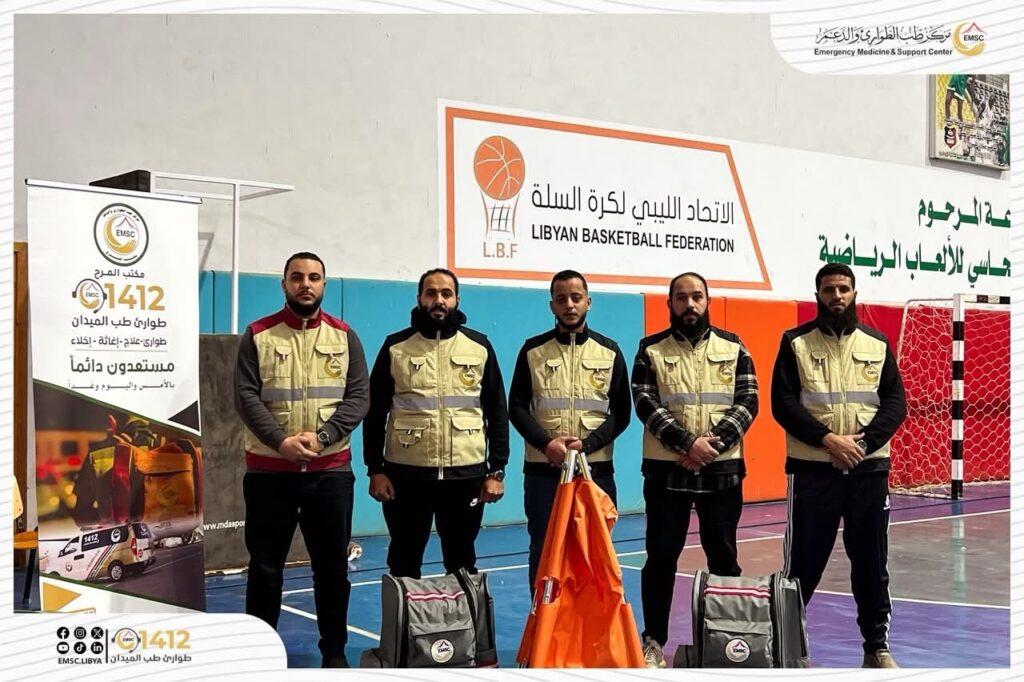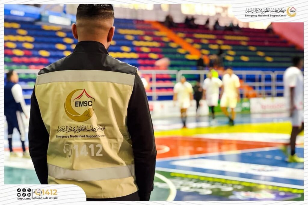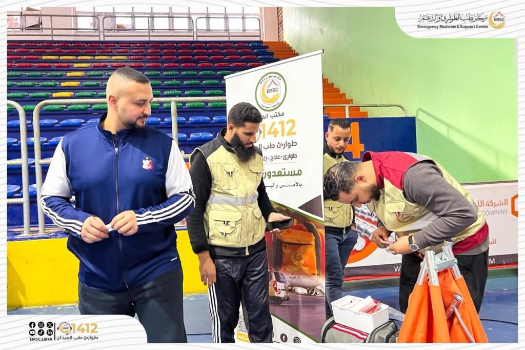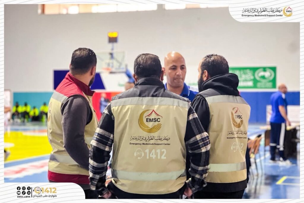 The Emergency Medicine and Support Center – Al-Marj Office deployed its medical teams with full readiness through its trained sports injury unit at the basketball court in Al-Marj, to provide medical coverage and emergency support for the Libyan Basketball Super Cup match between Al-Ahly Tripoli and Al-Ahly Benghazi.