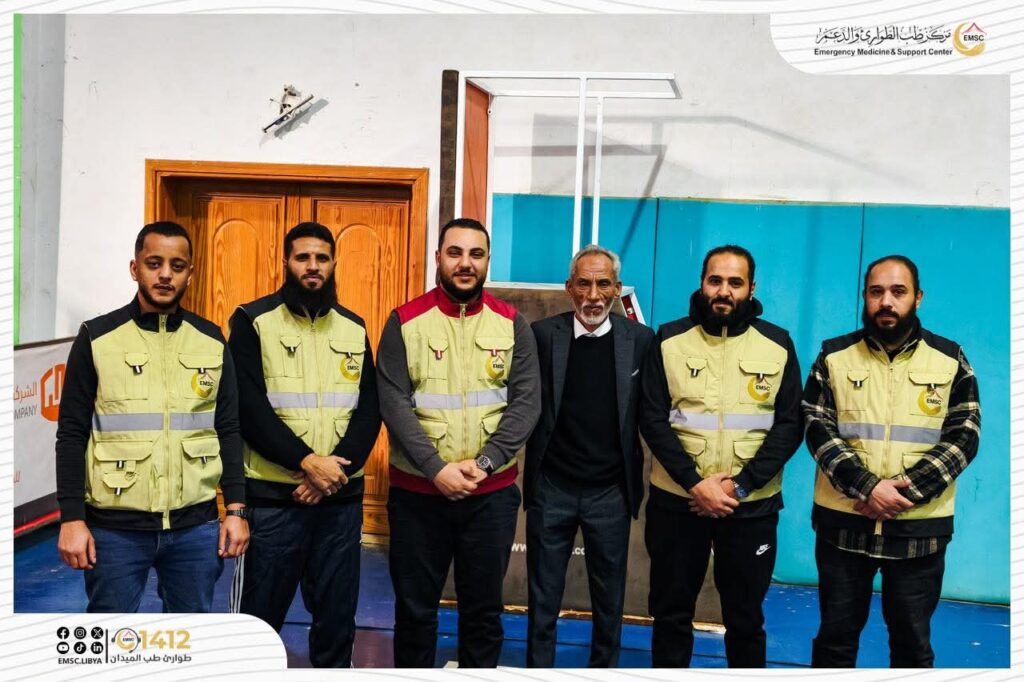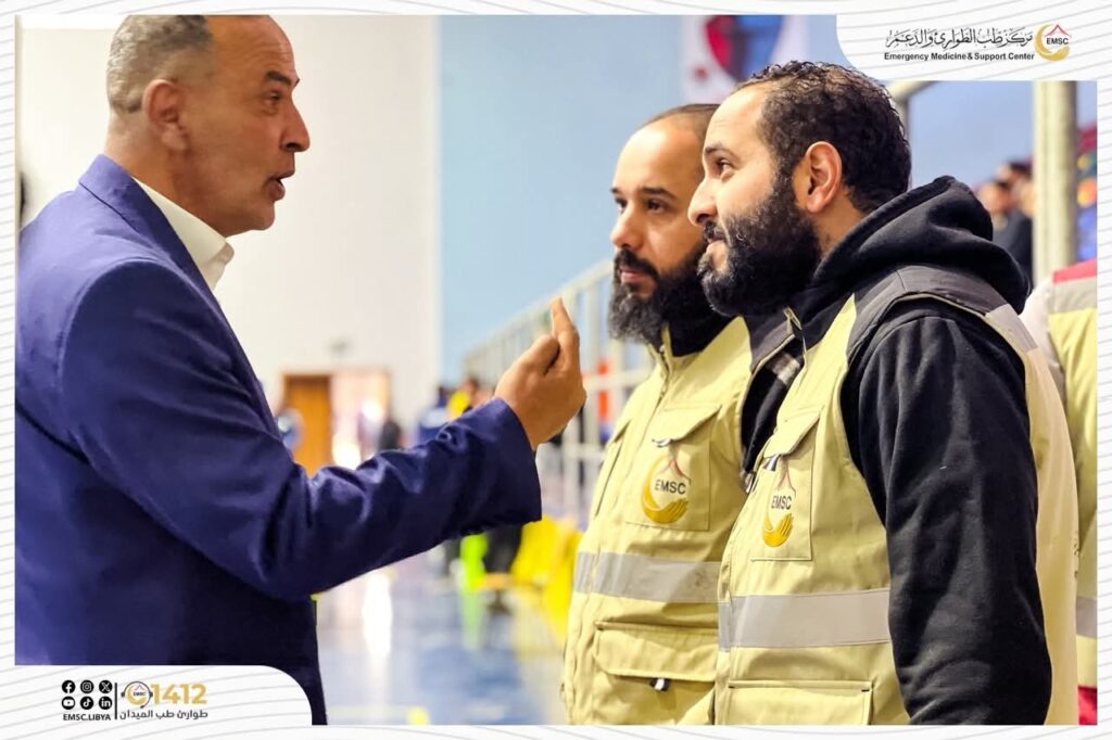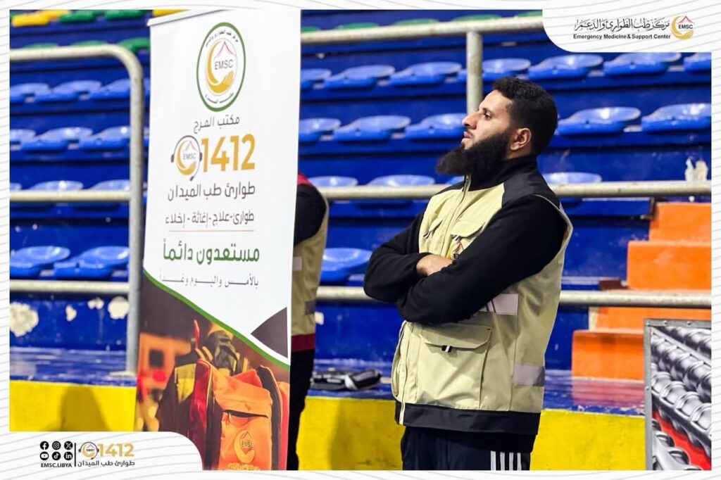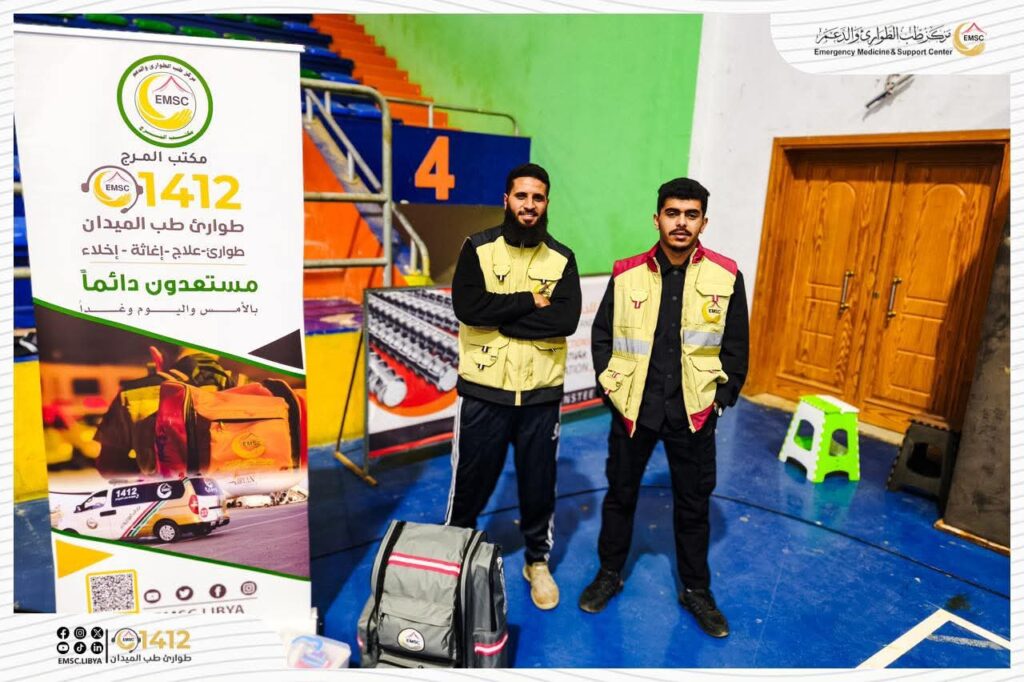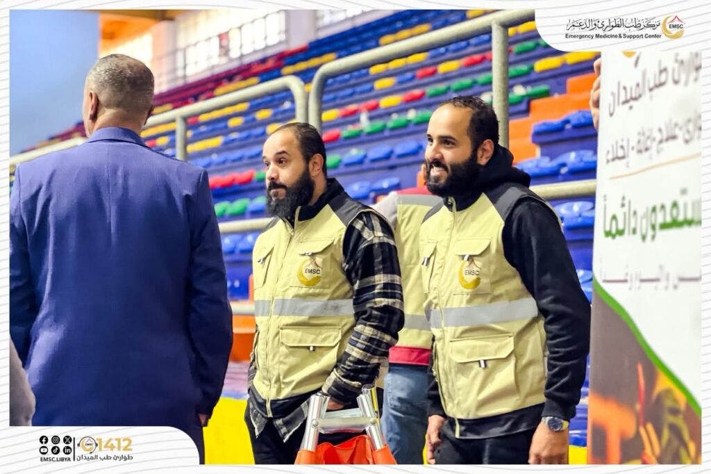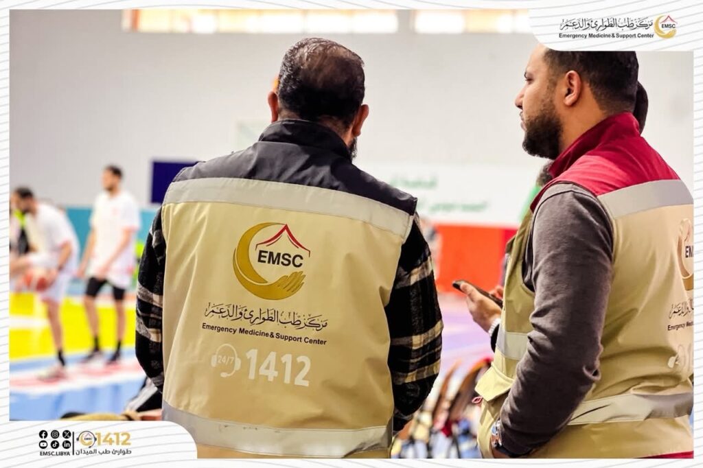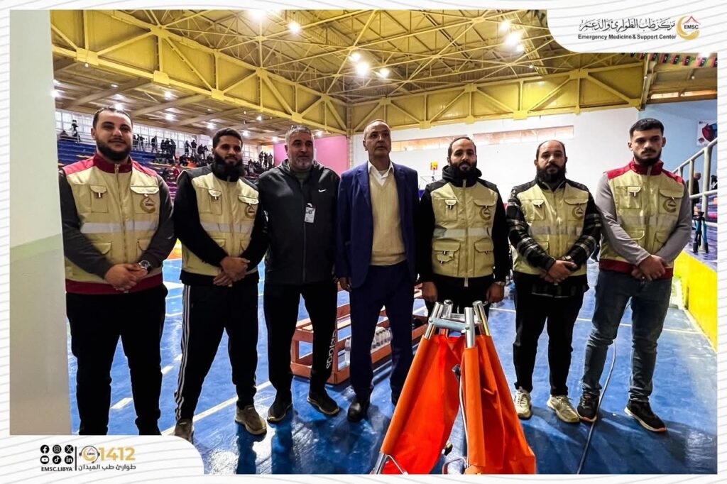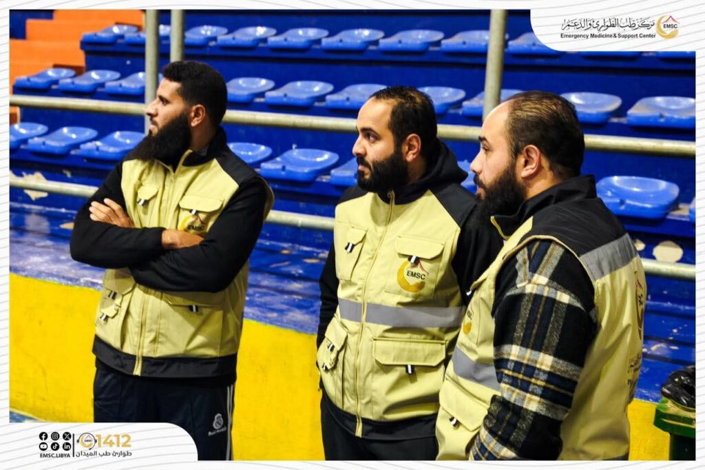 The Emergency Medicine and Support Center – Al-Marj Office deployed its medical teams with full readiness through its trained sports injury unit at the basketball court in Al-Marj, to provide medical coverage and emergency support for the Libyan Basketball Super Cup match between Al-Ahly Tripoli and Al-Ahly Benghazi.