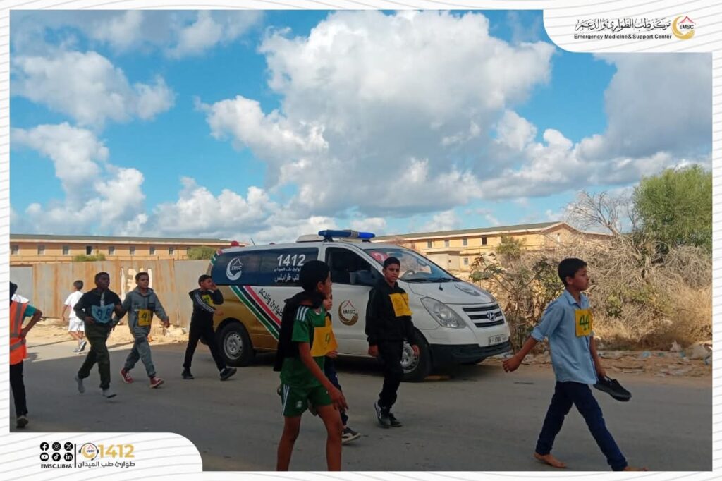 The Emergency Medicine and Support Center – Tripoli Office provided full medical coverage for the School Students’ Marathon organized in Janzour Municipality, in coordination with the Janzour Security Directorate and Janzour Health Services Department.