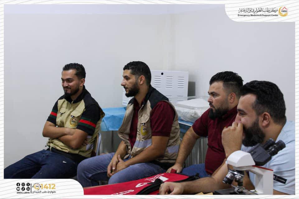 The workshop brought together members of the Center’s team alongside medical staff from Zuwara General Hospital and the Zuwara Health Services Department, in an interactive environment focused on practical application, confidence building, and readiness for effective emergency response.