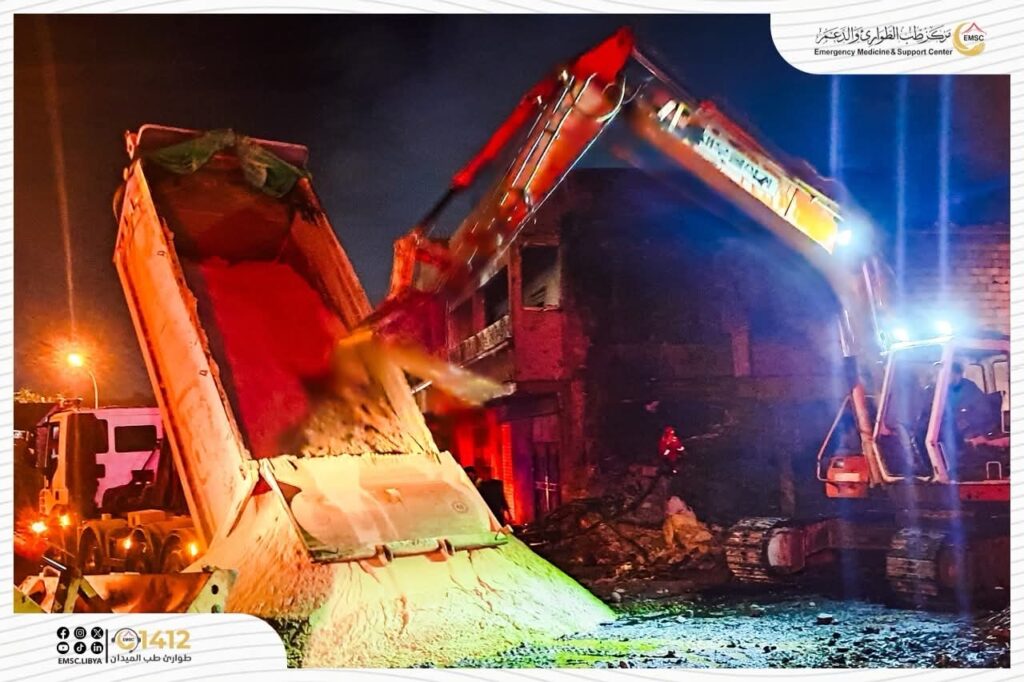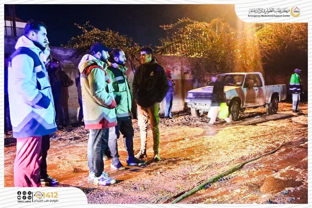 In the late hours of the night and amid challenging weather conditions, the Emergency Medicine and Support Center – Al-Marj Office received an urgent call reporting a major fire inside an oil storage facility in the heart of the city.