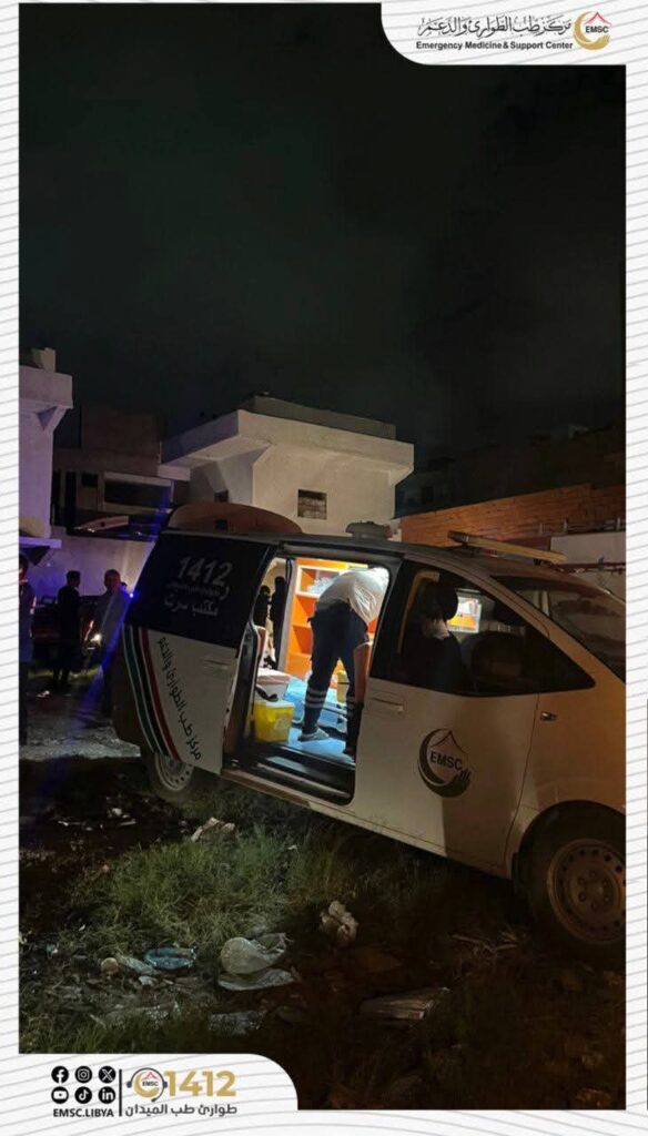 As part of its humanitarian and professional duty, the Emergency Medicine and Support Team – Sirte Office responded to a report of a gas cylinder explosion that occurred in a building located behind Al-Salam Hotel in Sirte.