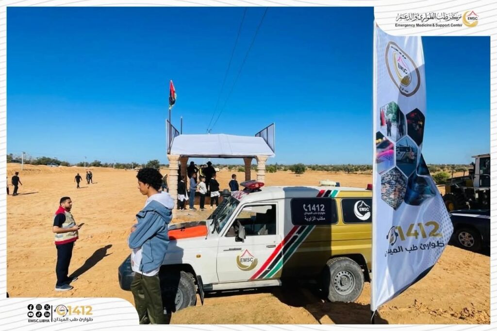 From the very beginning, the Emergency Medicine and Support Center – Zawiya Office, in cooperation with the Tripoli Office, undertook the medical coverage of the festival. Medical teams and ambulance crews were deployed on-site, providing immediate first aid to riders and attendees.