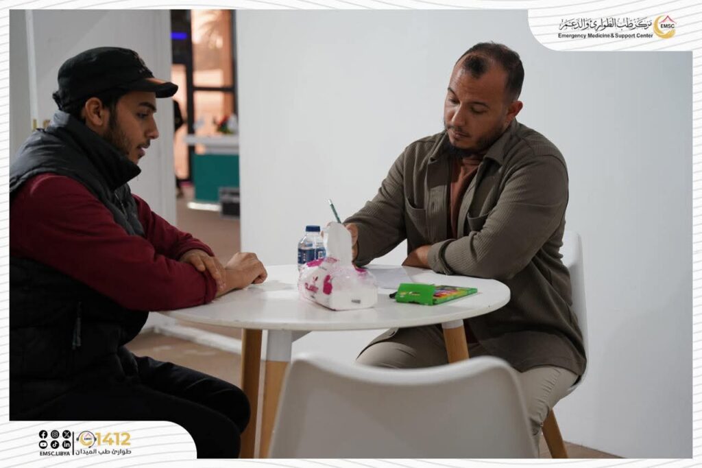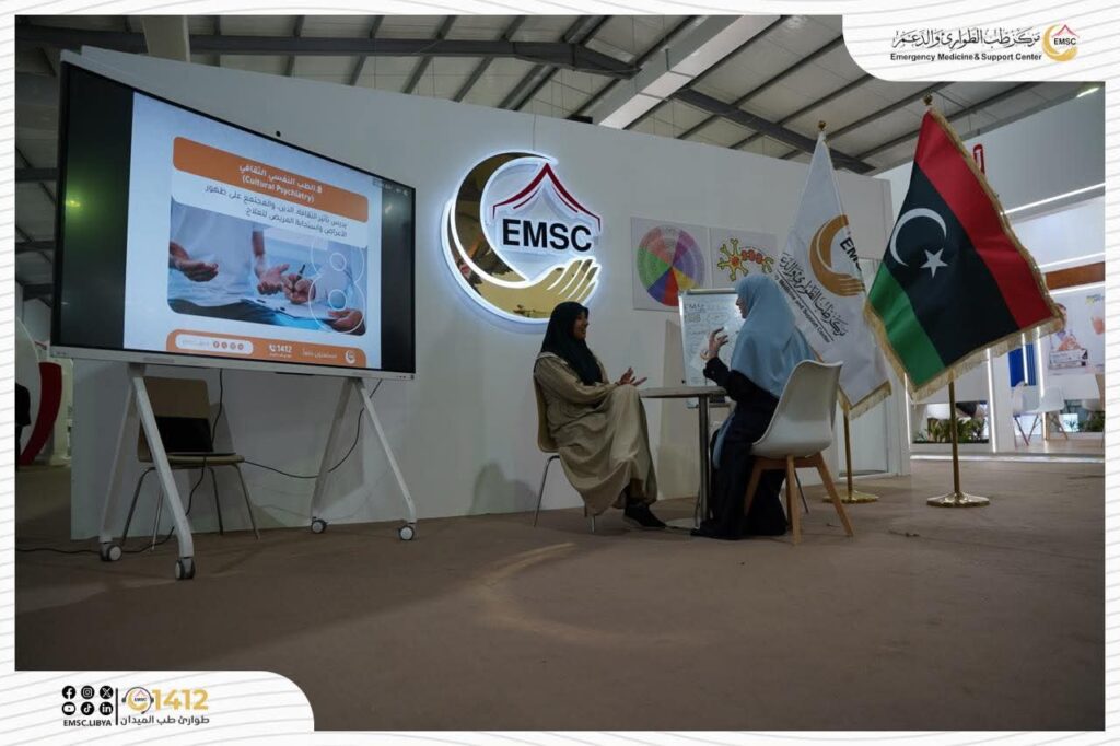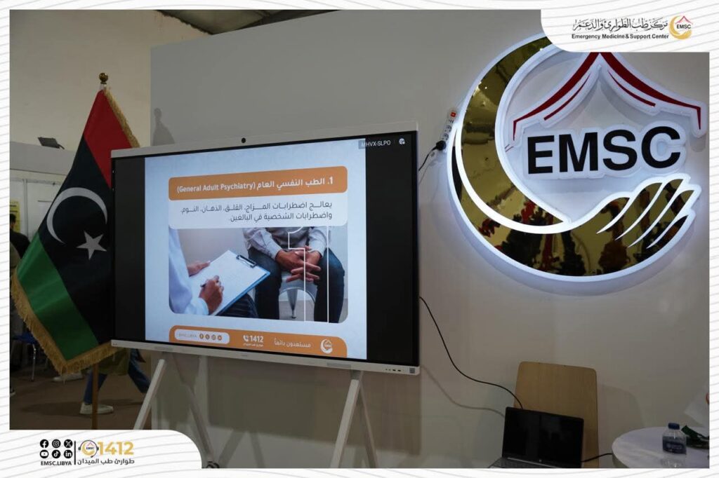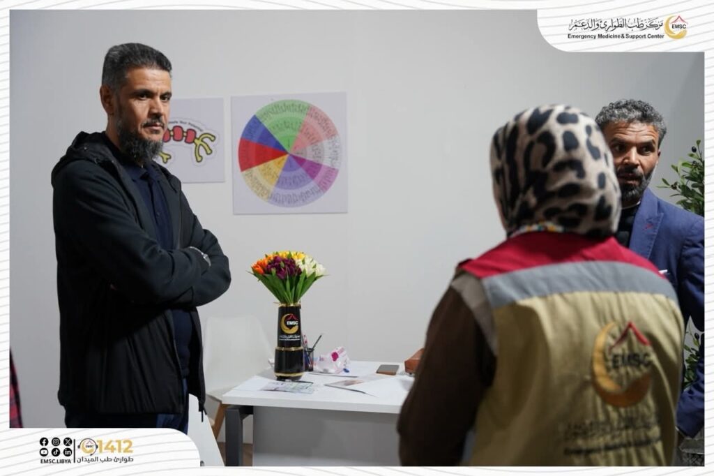 On the fourth day of the Libya Healthcare Forum and Exhibition, and in the presence of the Center’s General Manager, Dr. Tarek Al-Himshari, the Emergency Medicine and Support Center continued its distinguished participation through its dedicated mental health clinic booth.