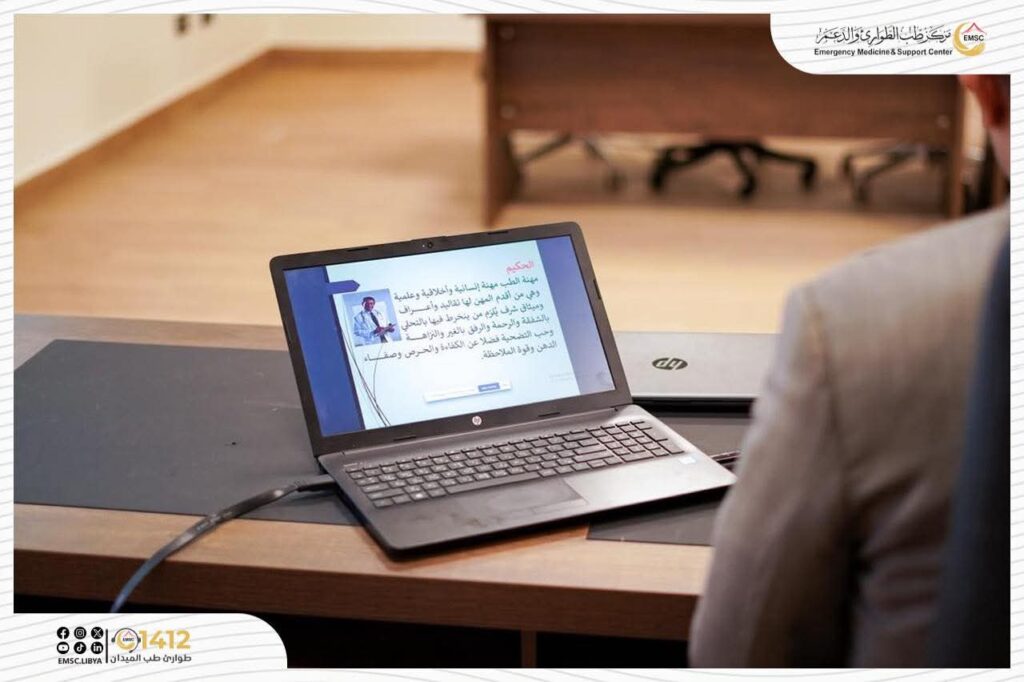 As part of the “Medical Profession Lectures and Regulations Program” aimed at enhancing the competencies of physicians enrolled in master’s programs, several members of the Emergency Medicine and Support Center (EMSC) medical staff participated today in a lecture titled “Medical Ethics and Professional Regulations,” organized by the Libyan Board of Medical Specialties.