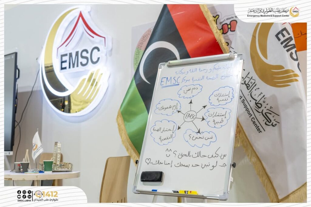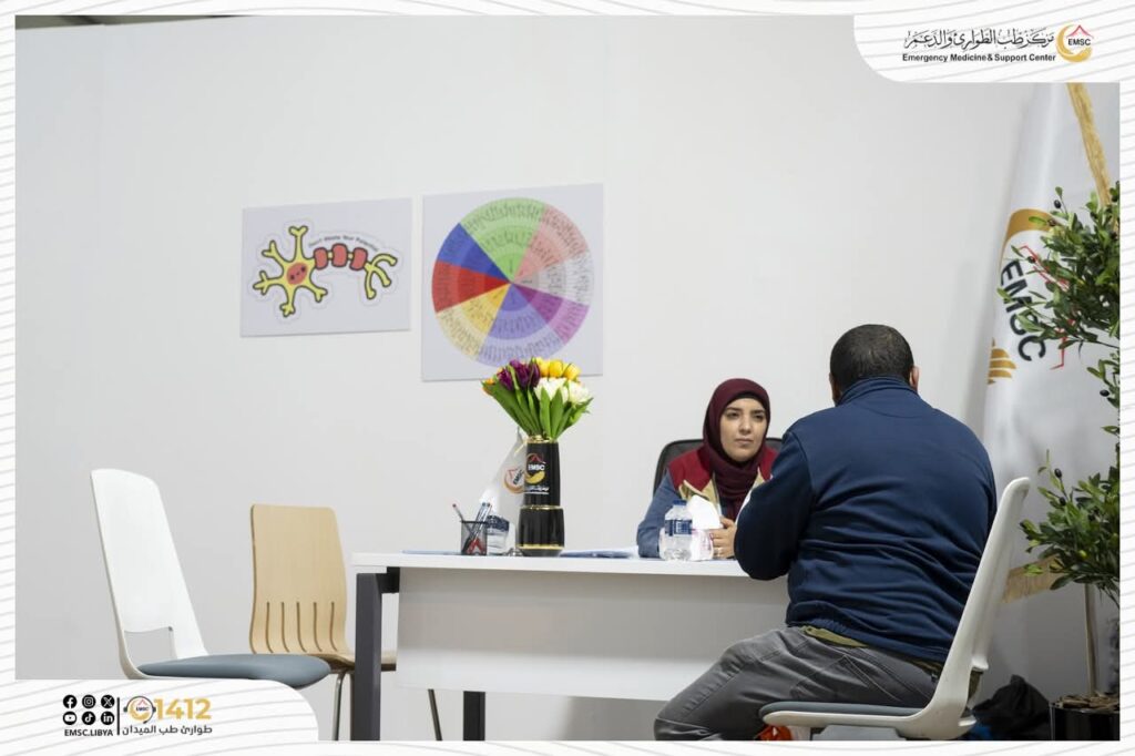 The Emergency Medicine and Support Center continued its participation on the second day of the Libya Healthcare Forum and Exhibition through its dedicated mental health clinic booth, which witnessed increasing interest from visitors across various medical and nursing specialties, as well as students and individuals interested in the field of mental health.