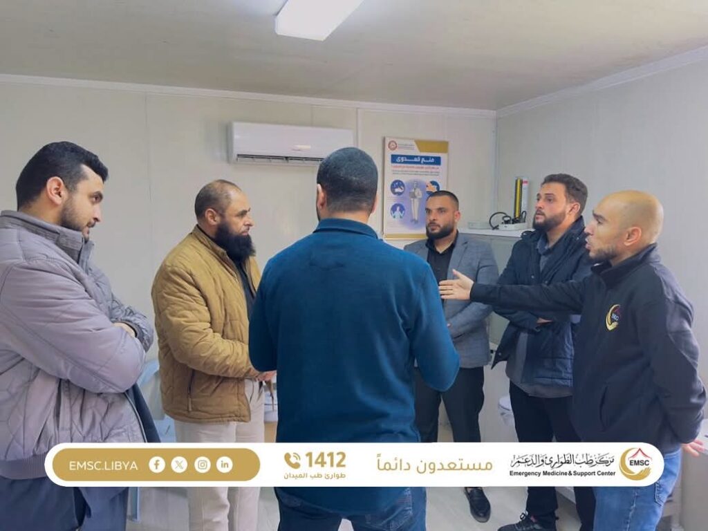A team from the Inspection and Follow-up Office, along with the Office of Branch Affairs at the Emergency Medicine and Support Center, carried out a field visit to the Zliten branch. The purpose was to assess workflow and evaluate the readiness of several departments and facilities, including outpatient clinics and the emergency and ambulance unit.