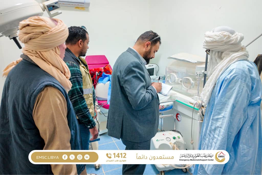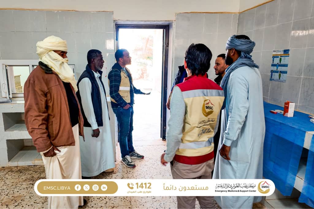 As part of a series of field visits targeting southern regions, and within a broader program aimed at rehabilitating healthcare facilities across Libya, a specialized team from the Emergency Medicine and Support Center conducted a visit today to Al-Awainat, located in the far southwest of the country, approximately 1,222 kilometers from Tripoli.