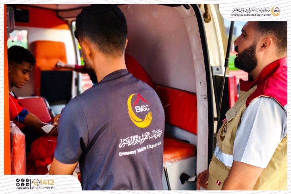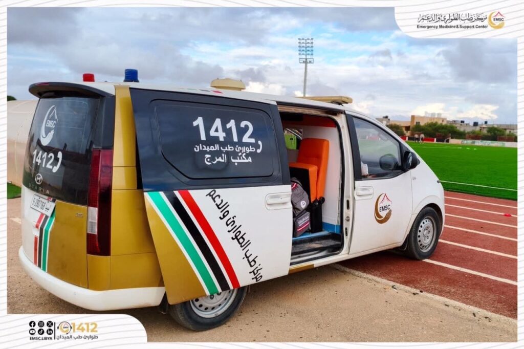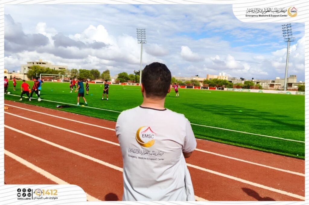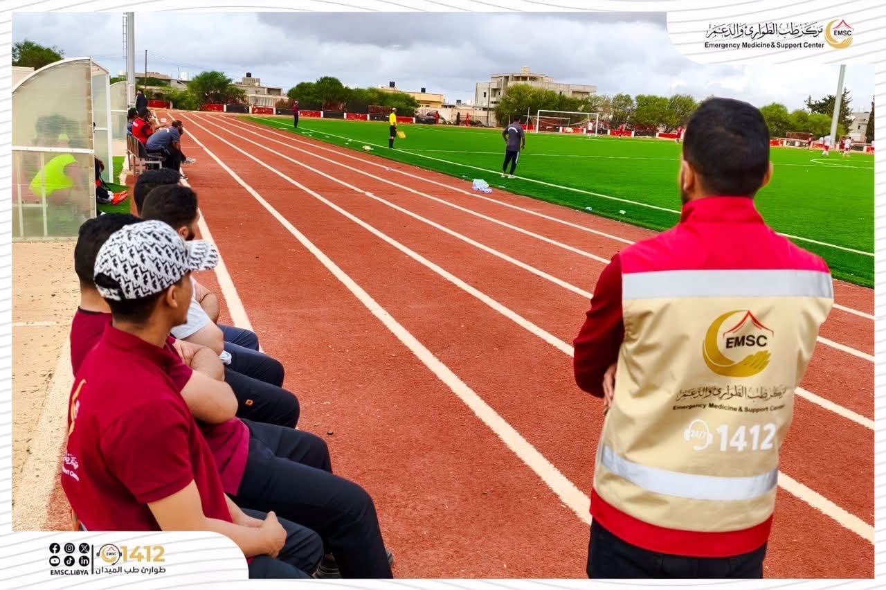 In support of sports activities and to ensure the safety of players, the Emergency Medicine and Support Center – Al-Marj Office provided medical coverage on Monday, November 17, for the match between Al-Marouj U-20 team and their counterparts from Al-Ahly Benghazi.
