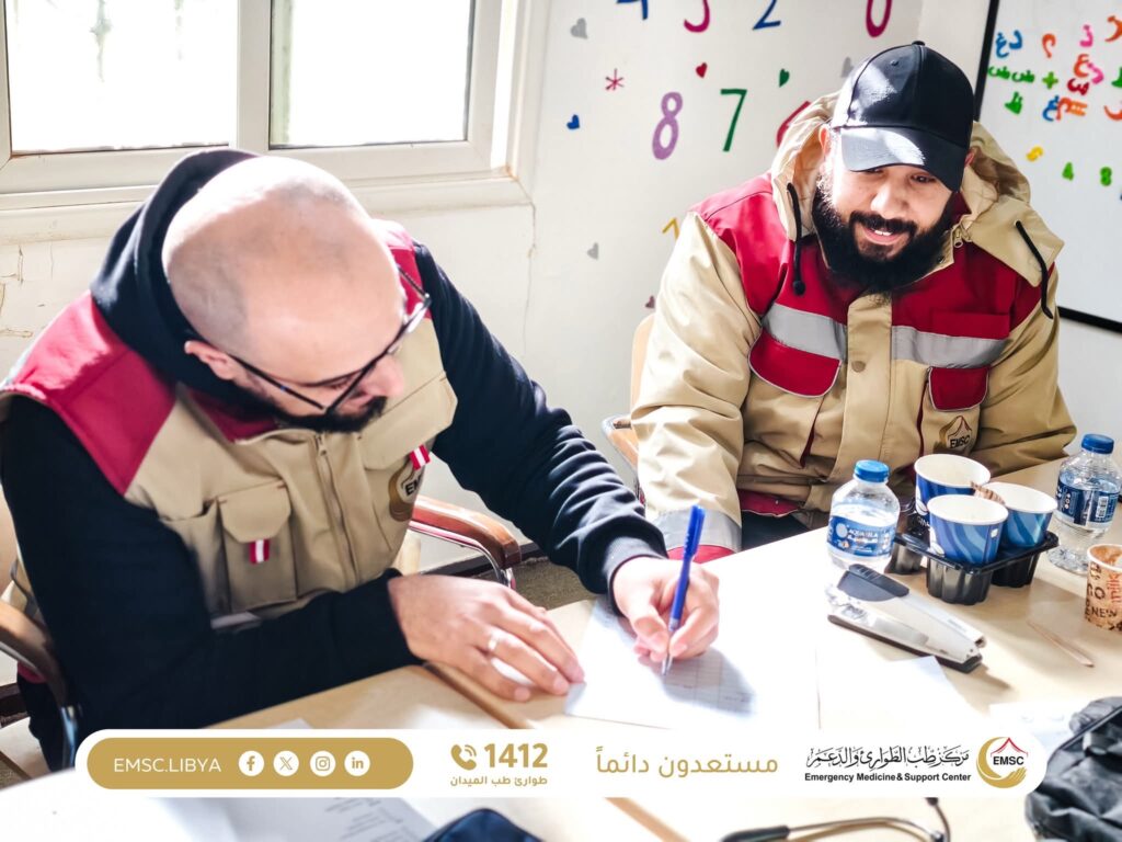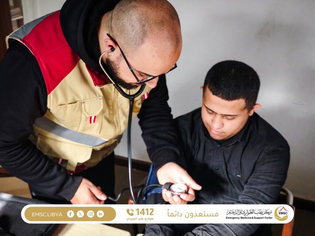 As part of its humanitarian and community role, a medical team from the Emergency Medicine and Support Center – Al Marj Office conducted a field visit to the White Hearts Organization for Down Syndrome in Al Marj. During the visit, medical examinations were provided to the children registered with the organization, in the presence of their parents.