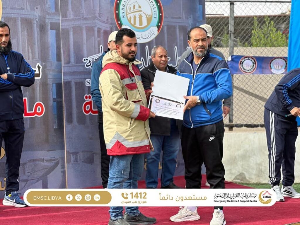 As part of its commitment to supporting community events and enhancing public safety standards, the Emergency Medicine and Support Center – Sabratta Office participated in securing the “Sabratta 2026 Race” within the framework of the “100-Day Campaign.” This was achieved by preparing ambulance teams and deploying them strategically along the race route to ensure rapid response to any emergency situations.