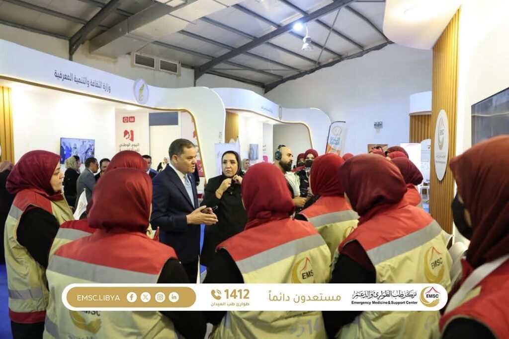 We were honored today by the visit of the Prime Minister, accompanied by the Minister of State for Women’s Affairs, to the pavilion of the Emergency Medicine and Support Center during the celebration of Libya’s National Women’s Day, held at the Tripoli International Fairgrounds.