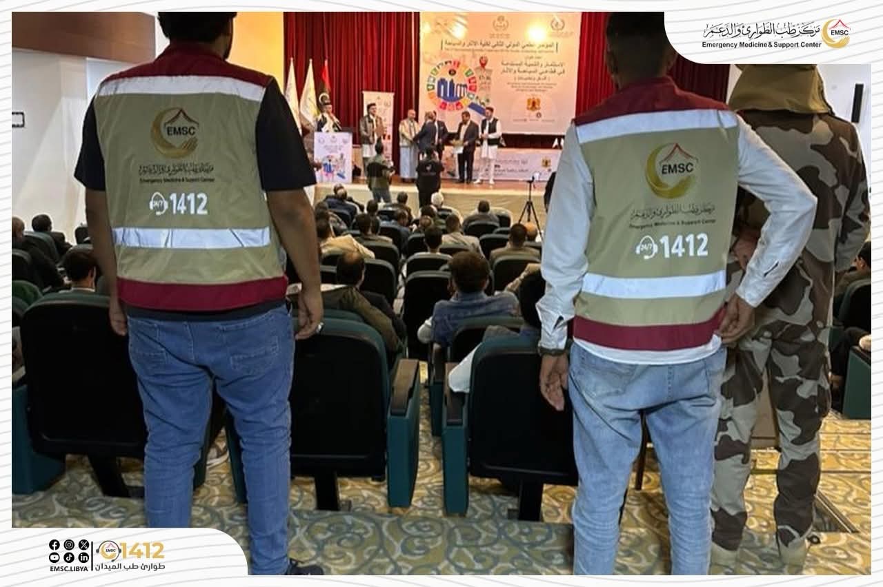 In an academic and cultural atmosphere that brought together researchers and experts from inside and outside Libya, the Emergency Medicine and Support Center – Tobruk Office participated in providing medical coverage for the Second International Scientific Conference of the Faculty of Archaeology and Tourism at the University of Tobruk.