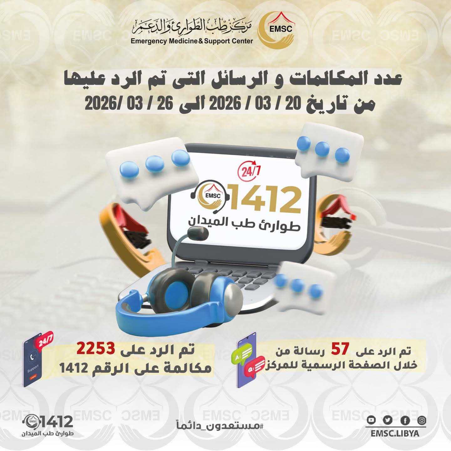 • Additionally, 57 messages sent عبر the center’s official social media page were responded to promptly.