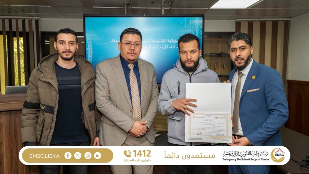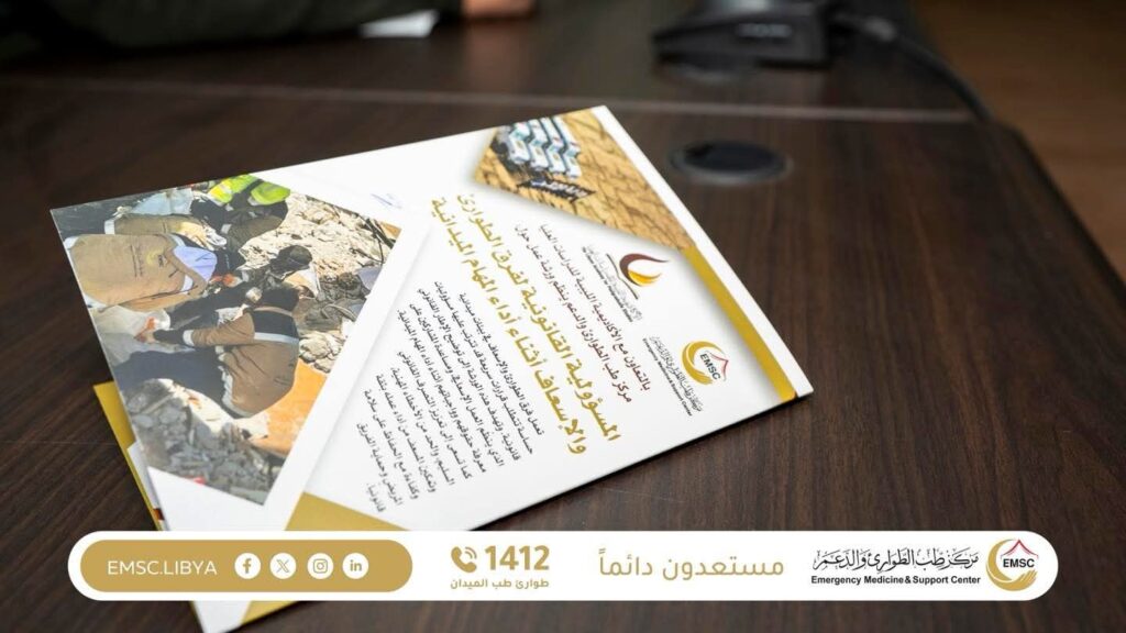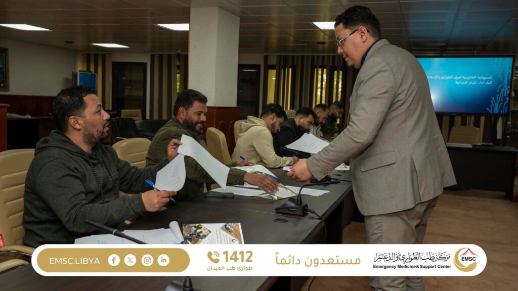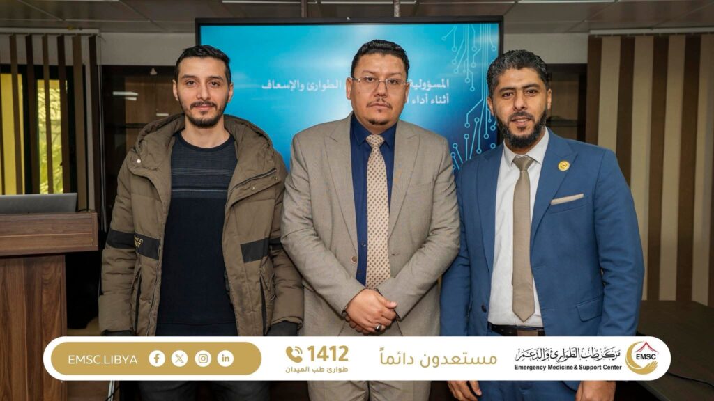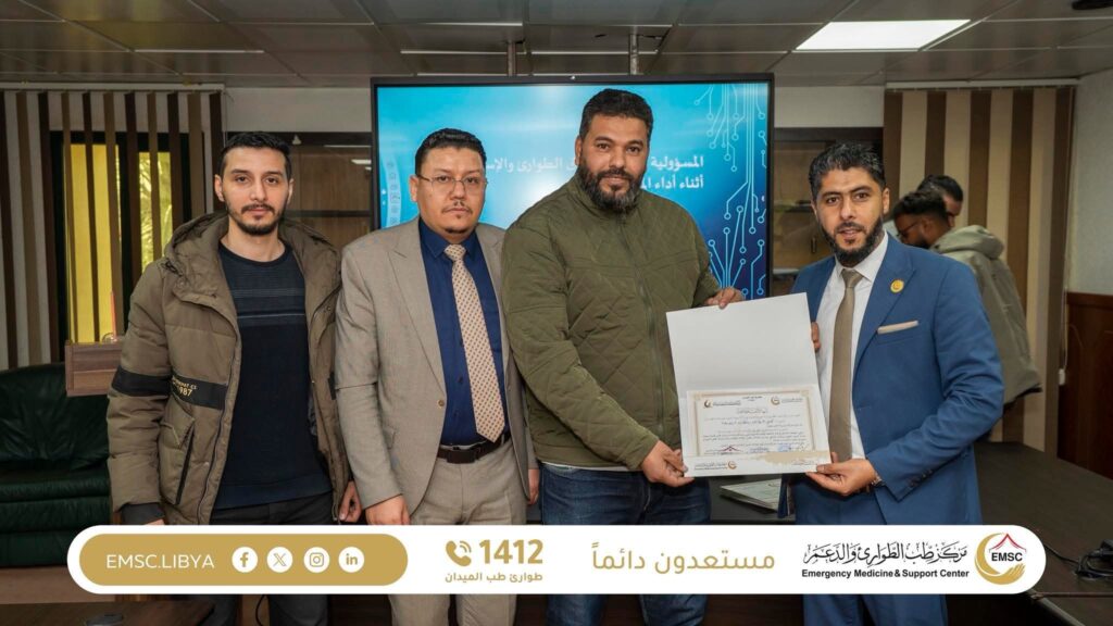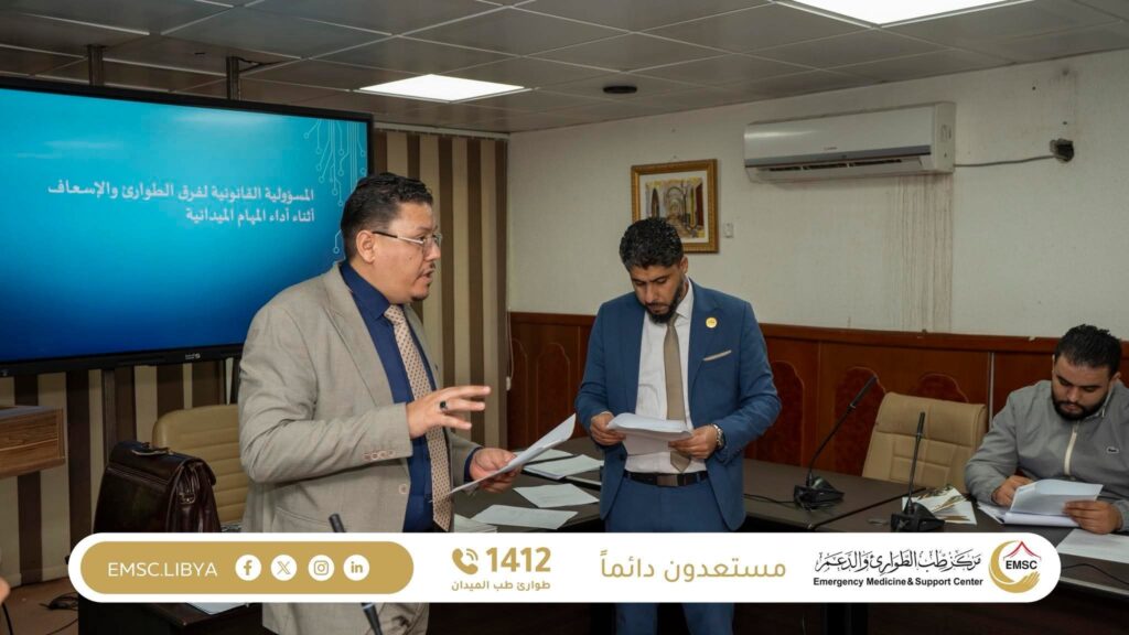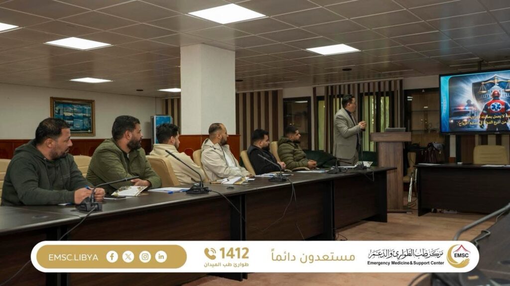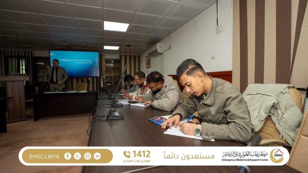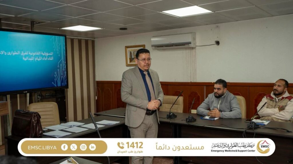 As part of efforts to enhance legal awareness and improve the efficiency of field personnel, the Emergency Medicine and Support Center, in cooperation with the Libyan Academy for Graduate Studies, organized a specialized workshop on Saturday, January 10, 2026, focusing on the legal responsibility of emergency and ambulance teams during field operations.
